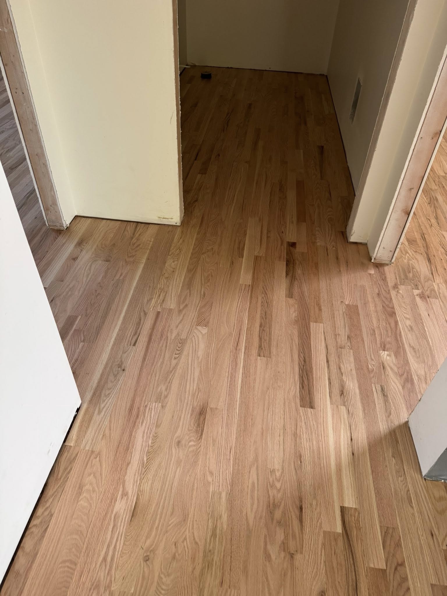 Mark and his crew showed up and installed our hardwood in 1 day! They made perfect cuts around our cabinets and tile. They were very professional and cleaned up everything when done - even vacuumed the entire floor before they left. Thanks!